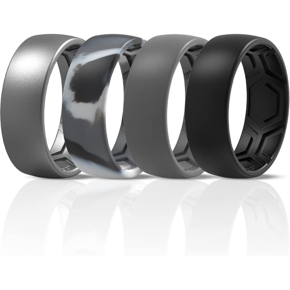 ThunderFit Men’s Patterned Silicone Rings, 8mm Wide 2.2mm Thick Rubber Bands,Variety Multipack 1,4,7(Pack H: Charcoal Black Iron Grey Grey Silver Smokey Grey)