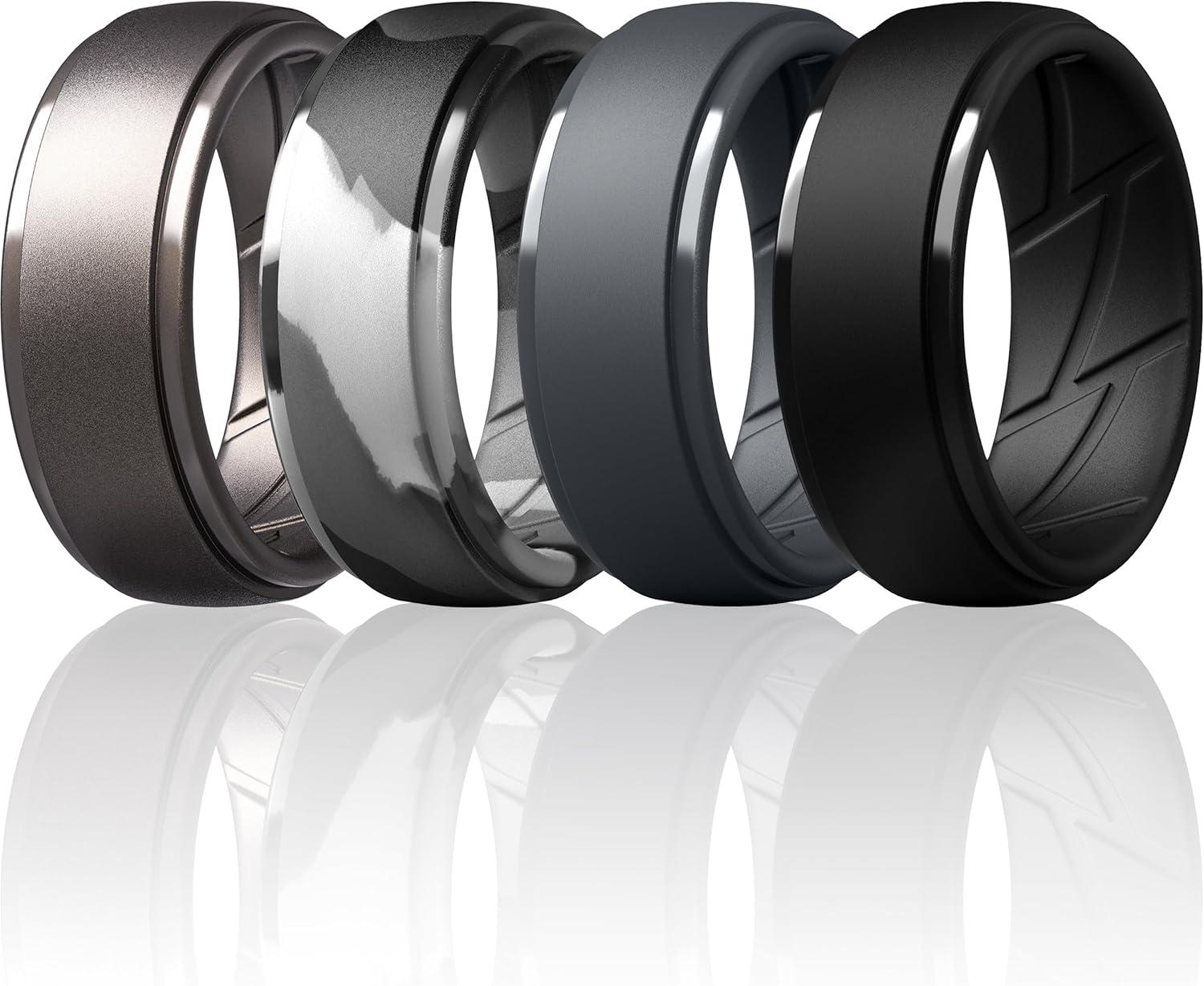 ThunderFit Men’s Silicone Rings 10mm Wide 2.5mm Thick Rubber Bands, Breathable, Variety Multipack 1-10(Pack ZB: Charcoal Black Iron Grey Metallic Platinum Grey Camo)