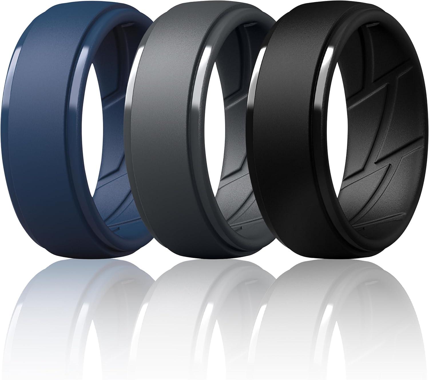 ThunderFit Men’s Silicone Rings 10mm Wide 2.5mm Thick Rubber Bands, Breathable, Variety Multipack 1-10(Pack ZK: Charcoal Black Iron Grey Navy Blue)
