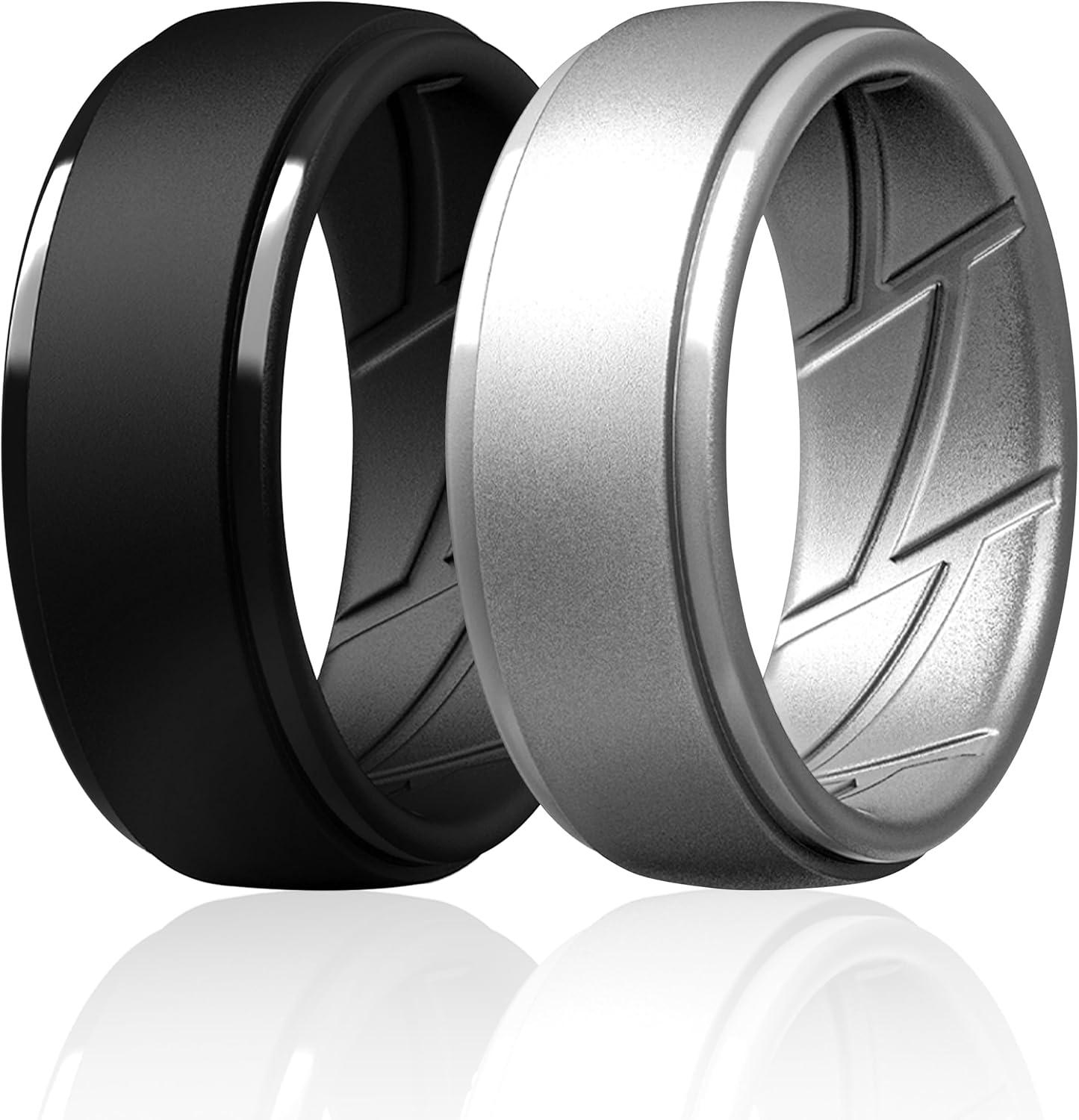ThunderFit Men’s Silicone Rings 10mm Wide 2.5mm Thick Rubber Bands, Breathable, Variety Multipack 1-10(Pack ZL: Charcoal Black Grey Silver)