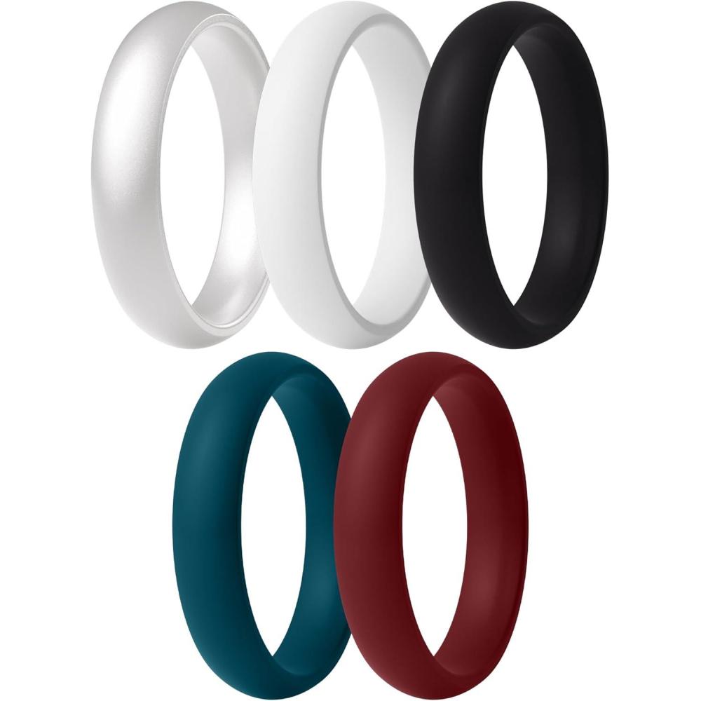 ThunderFit Silicone Anniversary Rings for Women, 5.5mm Wide, 2mm Thick, Wedding Rubber Bands, Variety Multipack 1-12(Pack ZB: Pearl White Black Deep Lagoon Red Dahlia)