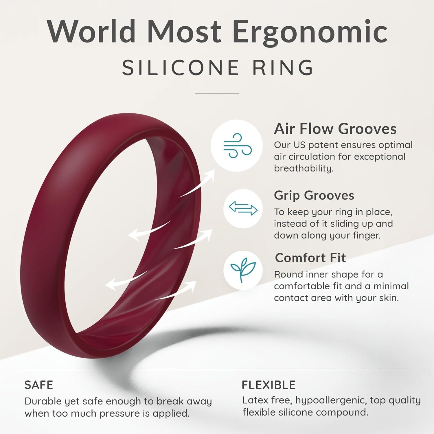 ThunderFit Silicone Rings for Her – Mix Women’s Silicone Wedding Rings, 1.8mm Thick Rubber Engagement Rings Braided & 4mm Classic Rings Combo(Pack D: Fudge Winetasting Malaga Crystal Pink Dusky Orchid)
