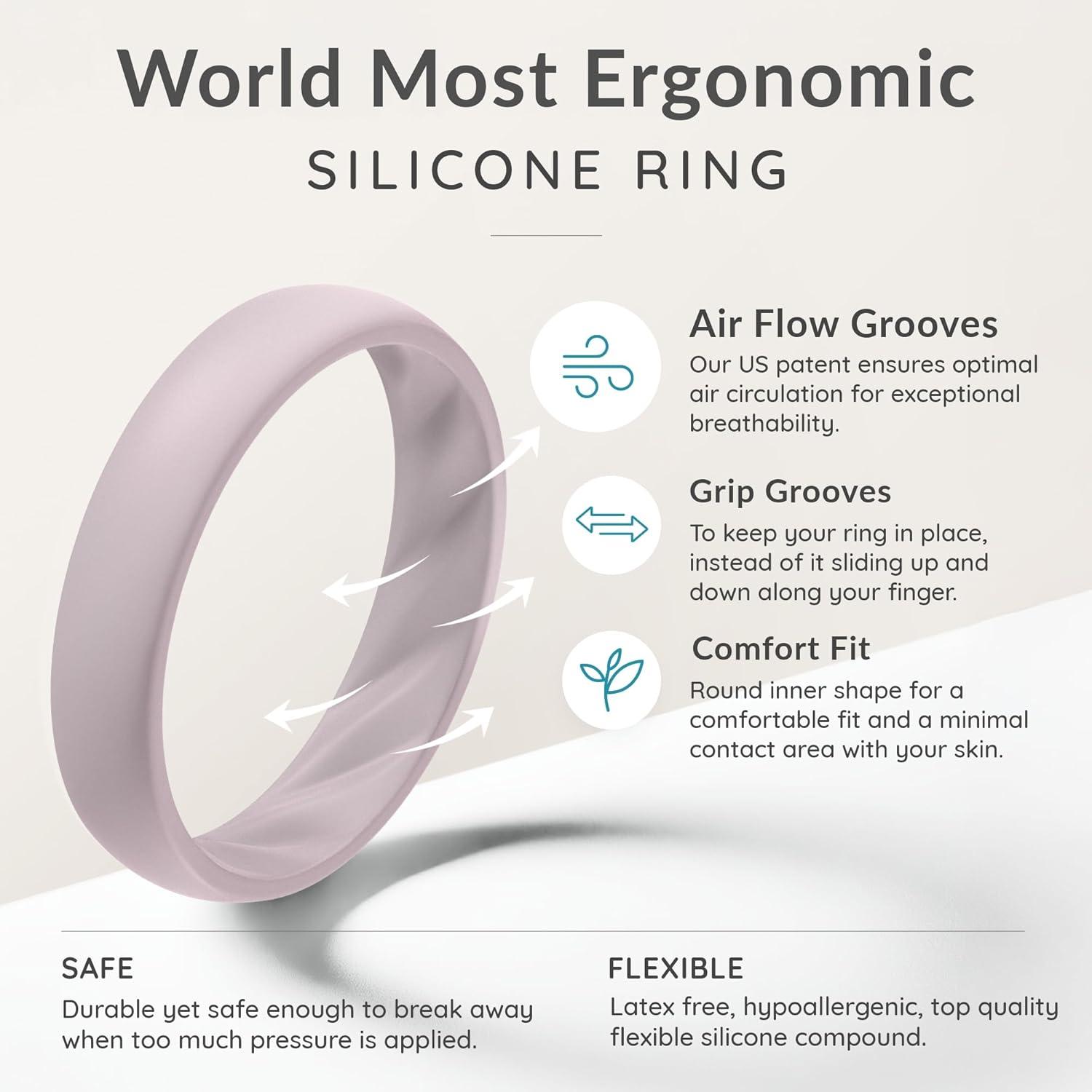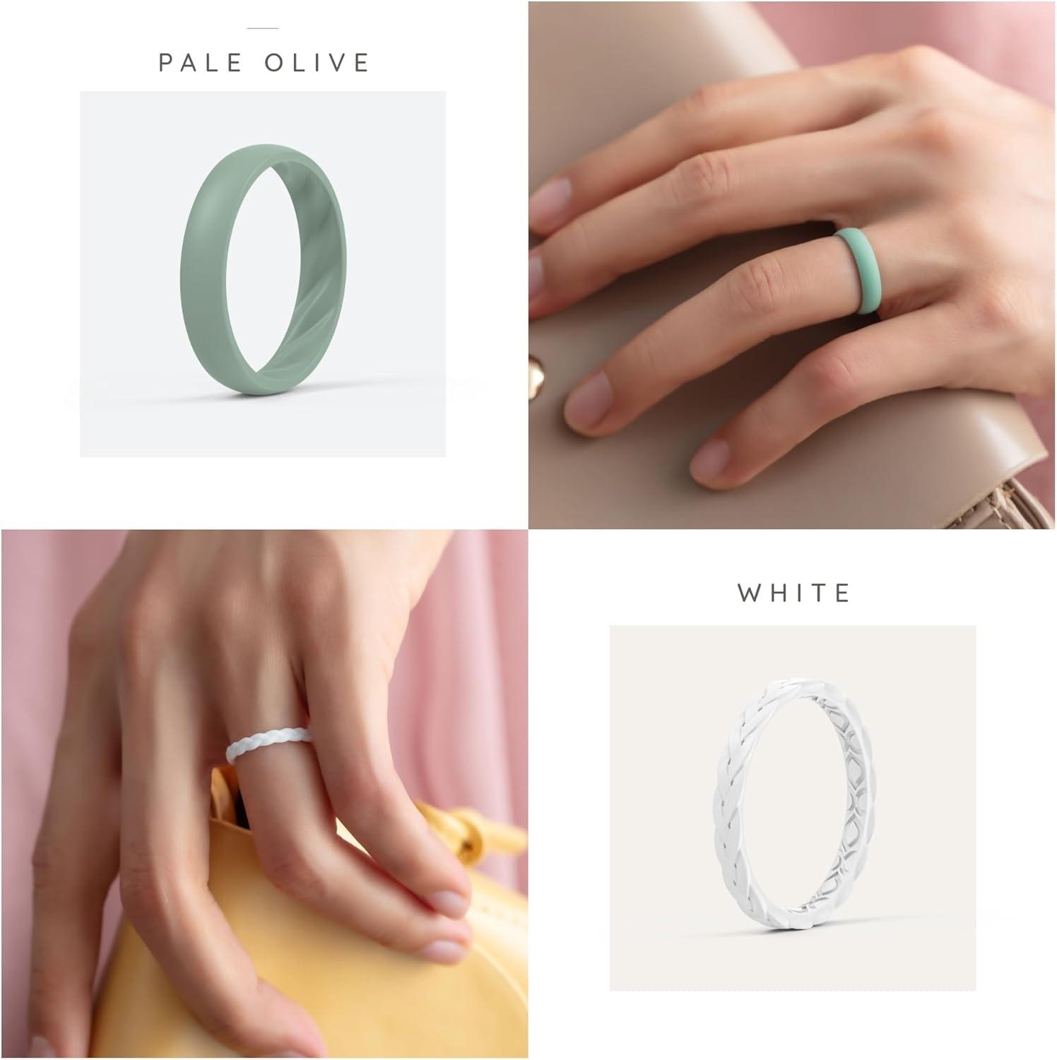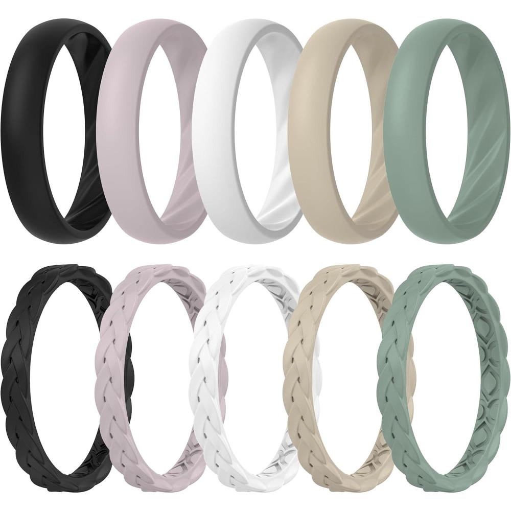 ThunderFit Silicone Rings for Her – Mix Women’s Silicone Wedding Rings, 1.8mm Thick Rubber Engagement Rings Braided & 4mm Classic Rings Combo(Pack L: Black Cloud Gray White Cement Green Bay)
