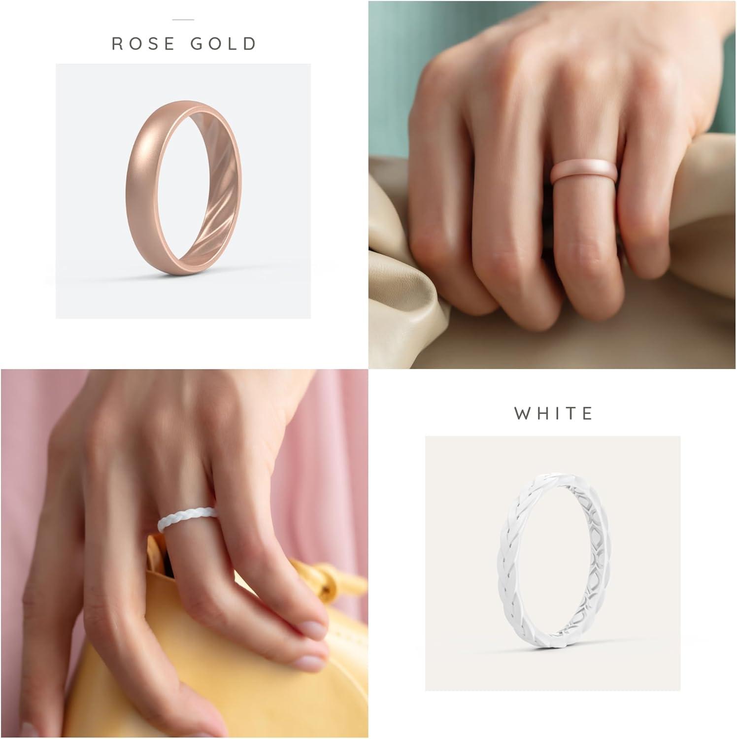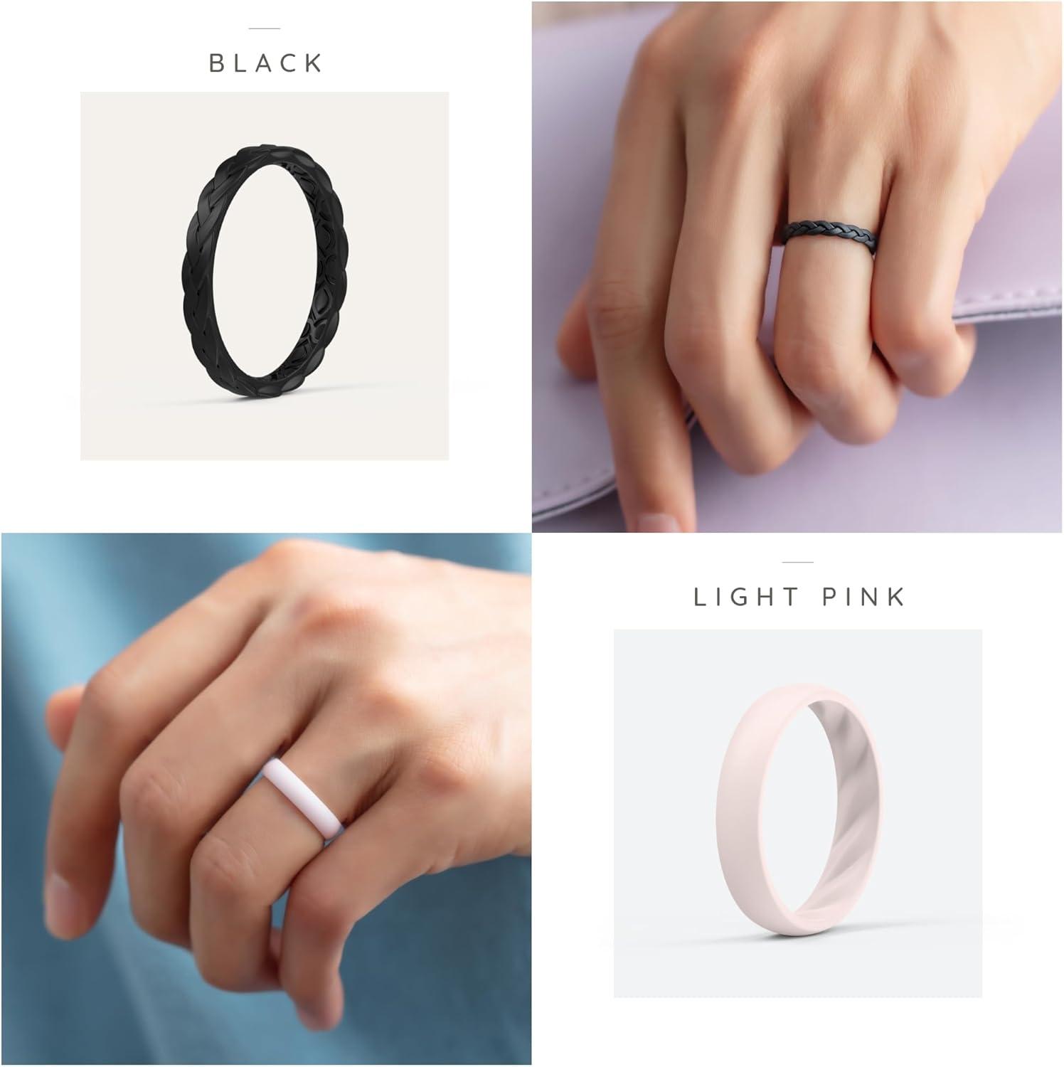 imageThunderFit Silicone Rings for Her  Mix Womens Silicone Wedding Rings 18mm Thick Rubber Engagement Rings Braided ampamp 4mm Classic Rings ComboPack O Green Bay Metallic  Feldspar  Laurel Wreath  Galapagos Green  Black