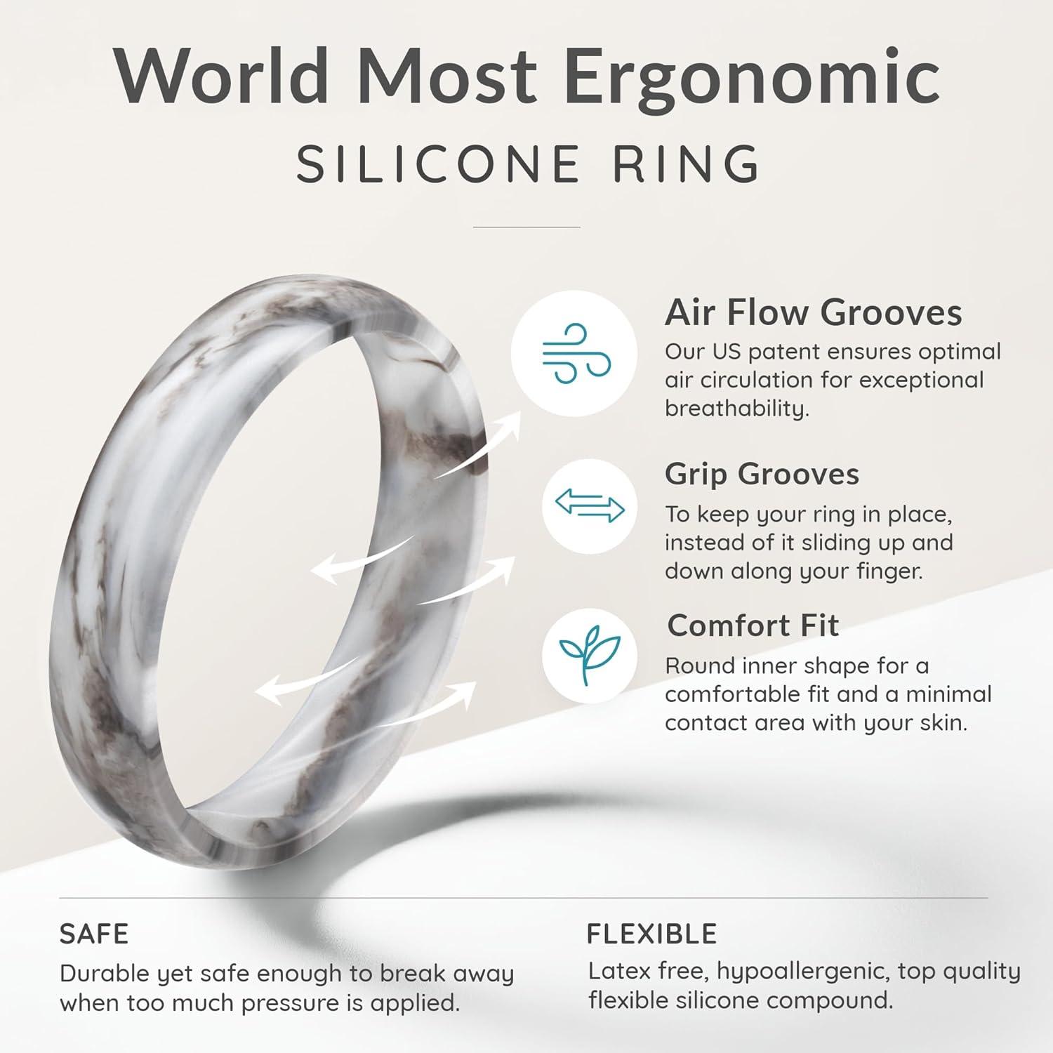 ThunderFit Silicone Rings for Her – Mix Women’s Silicone Wedding Rings, 1.8mm Thick Rubber Engagement Rings Braided & 4mm Classic Rings Combo(Pack N: Black Marble C Heavenly Pink Toast (Metallic) White)