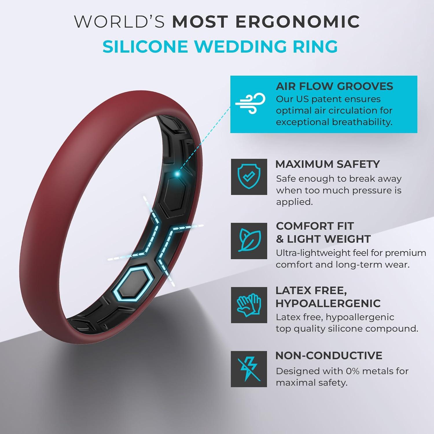ThunderFit Silicone Rings for Him and Her, Rubber Wedding Engagement Bands Unisex, 2mm Thick in 4mm & 8mm Widths, Variety Multipack 1/4/7(Pack N: Burgundy/Black)