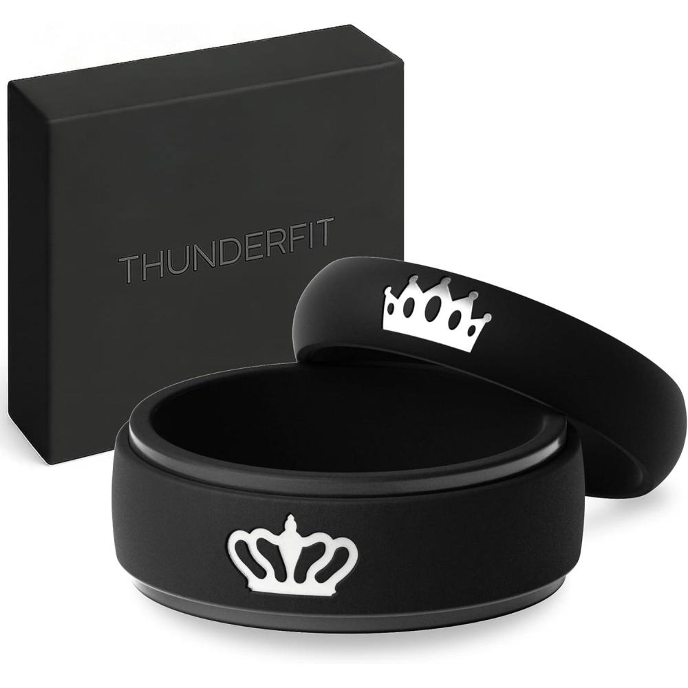imageThunderFit Silicone Rings for Him and Her Wedding Bands for Couples with Crown and KingQueen Engraving 2Pack Couples Rubber Engagement Bands with Gift Box657 W  556 M