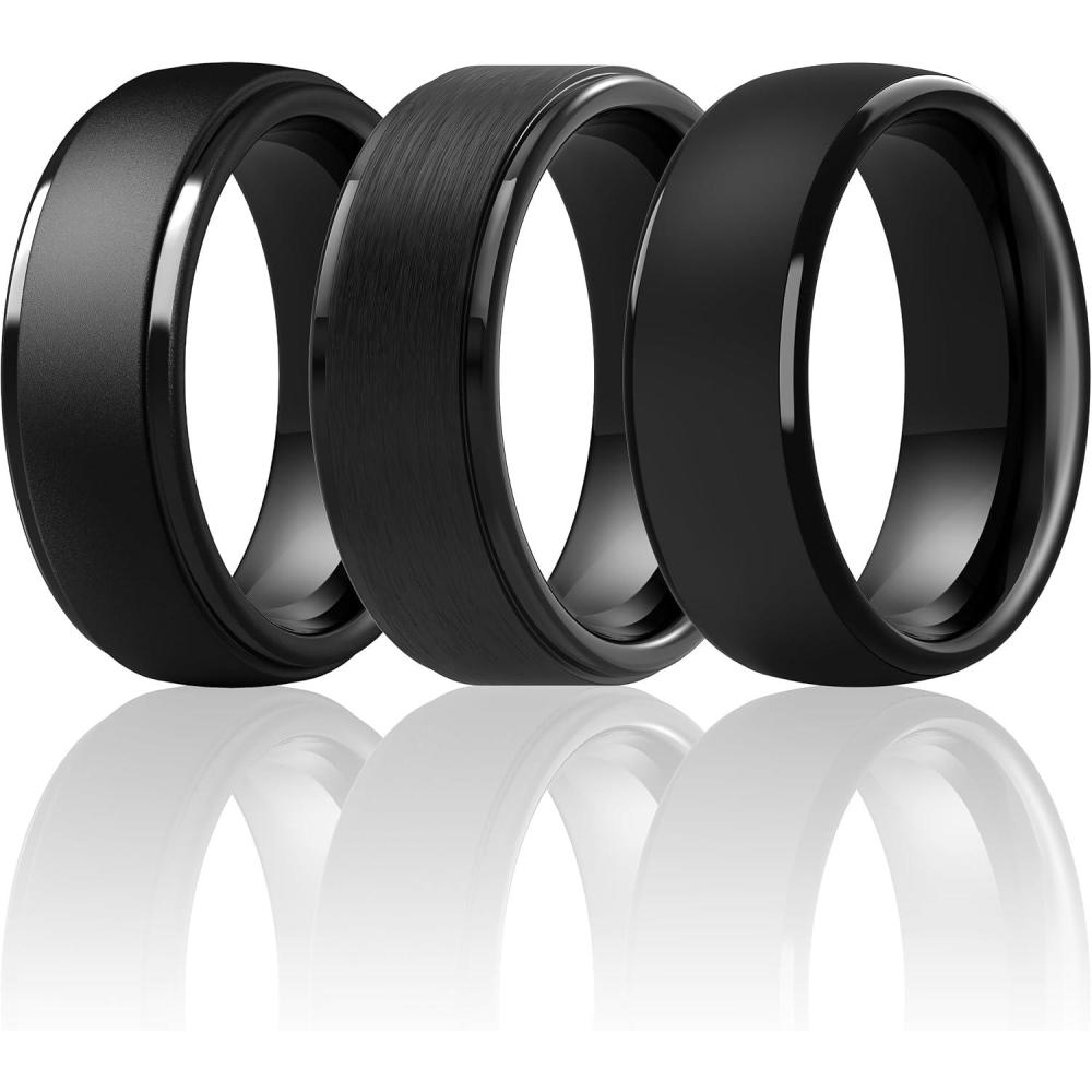 imageThunderFit Silicone Rings for Men  7 Rings  4 Rings  1 Ring Step Edge Rubber Wedding Bands 10mm Wide  25mm ThickPack C 7 Black Rings