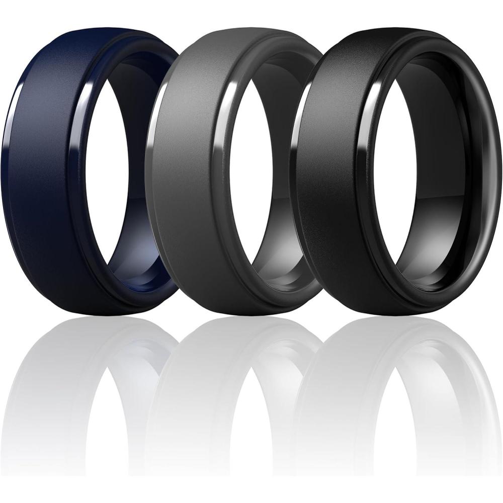 ThunderFit Silicone Rings for Men – 7 Rings / 4 Rings / 1 Ring Step Edge Rubber Wedding Bands 10mm Wide – 2.5mm Thick(Pack I: Dark Blue B Grey B Black)