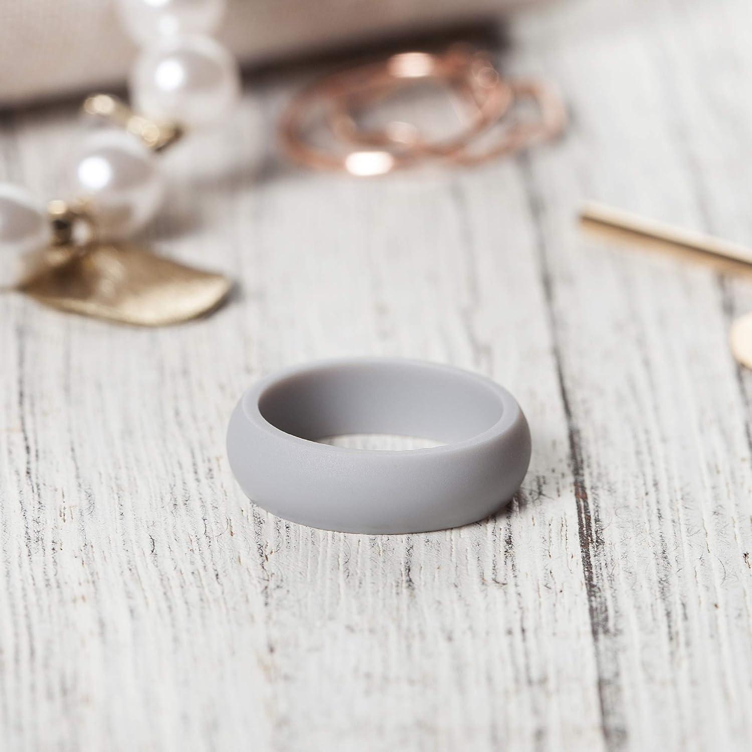 ThunderFit Silicone Wedding Bands for Women, Dome Unique Anniversary Rings 5.5mm Wide 2mm Thick – 1/2/3/4/5/6/7/8/12 Variety Multipack(Pack L: Light Grey)