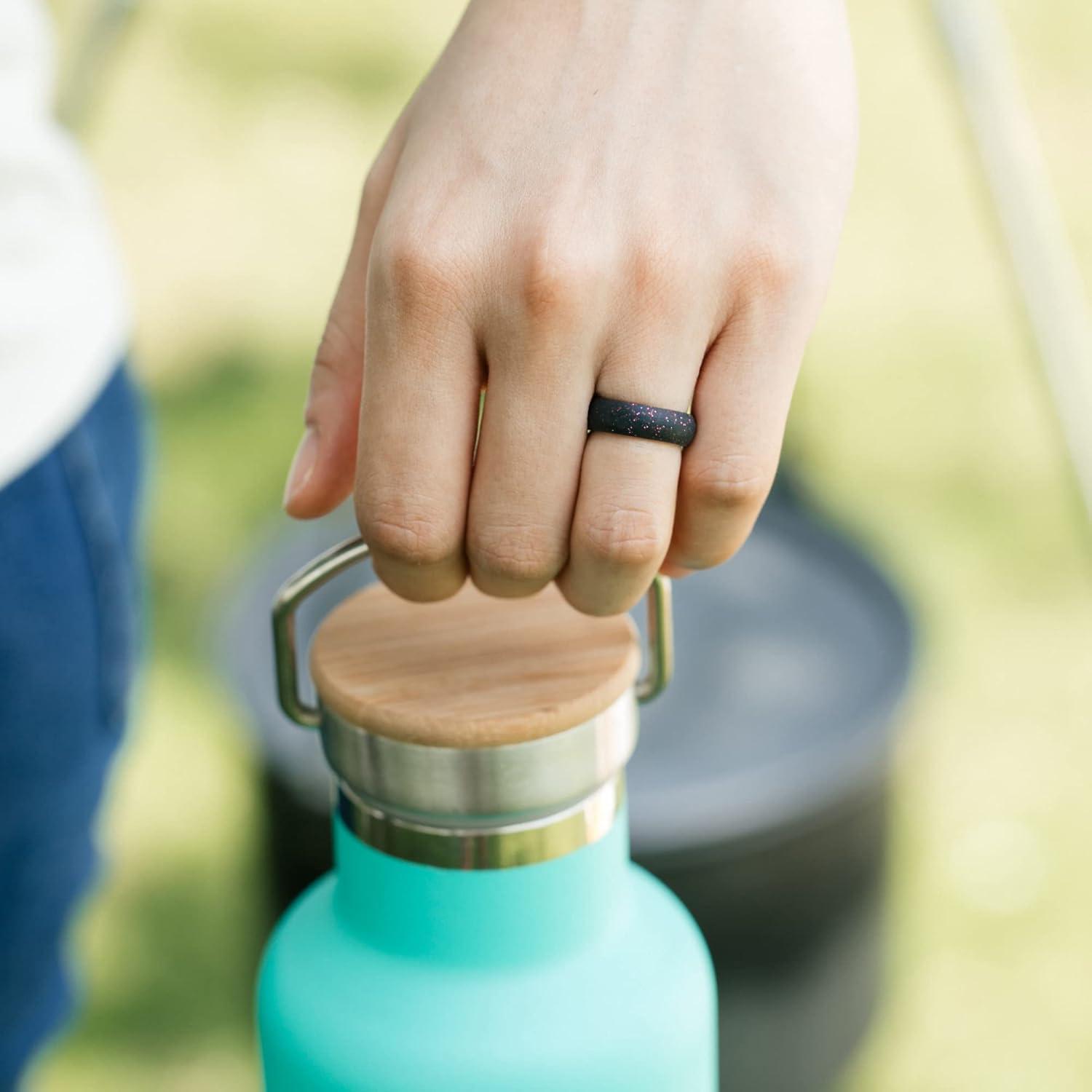 ThunderFit Silicone Wedding Bands for Women, Dome Unique Anniversary Rings 5.5mm Wide 2mm Thick – 1/2/3/4/5/6/7/8/12 Variety Multipack(Pack S: Purple White Silver Black with Purple Glitter)