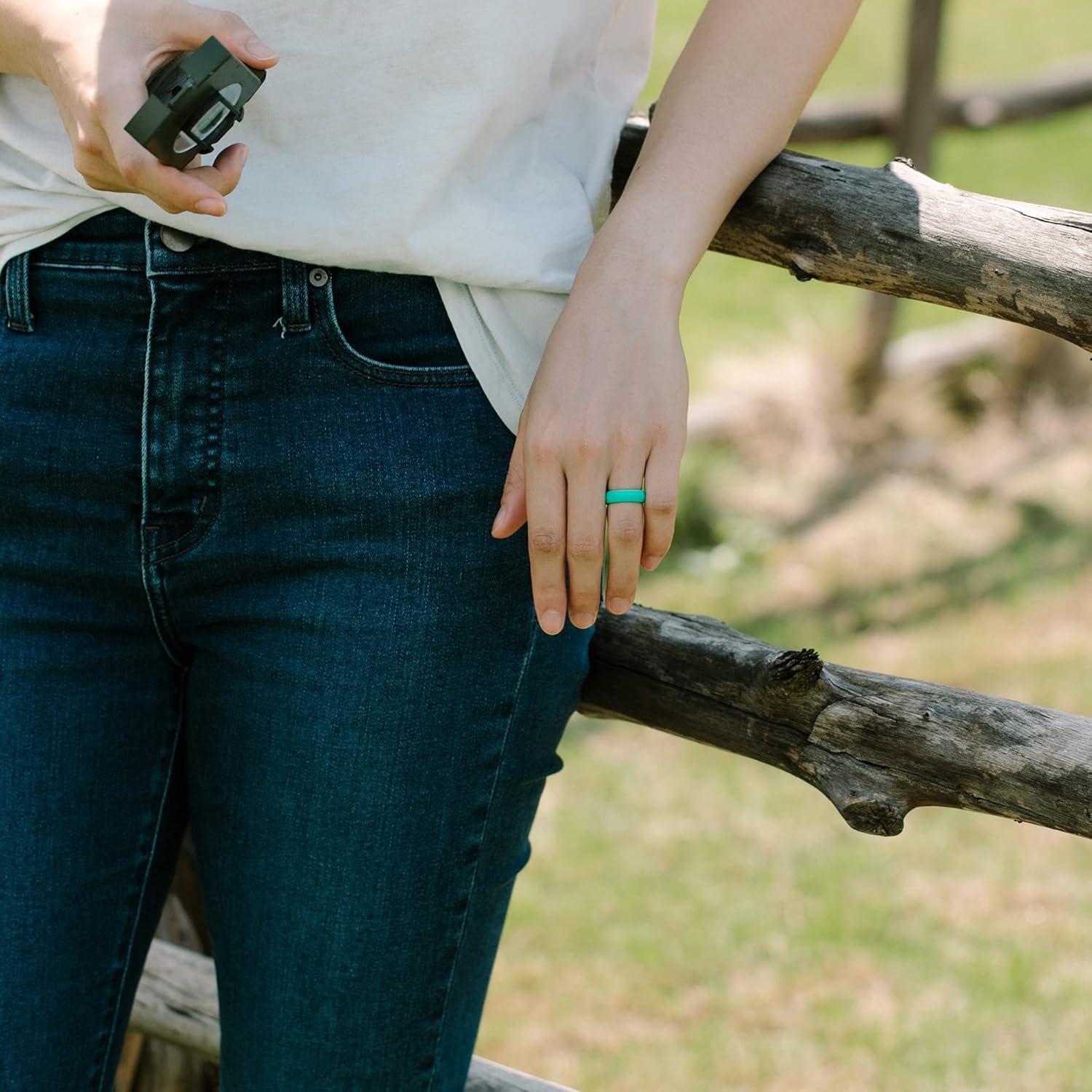 imageThunderFit Silicone Wedding Bands for Women Dome Unique Anniversary Rings 55mm Wide 2mm Thick  1234567812 Variety MultipackPack U Rose Gold  White  Teal  Black with Teal Glitter