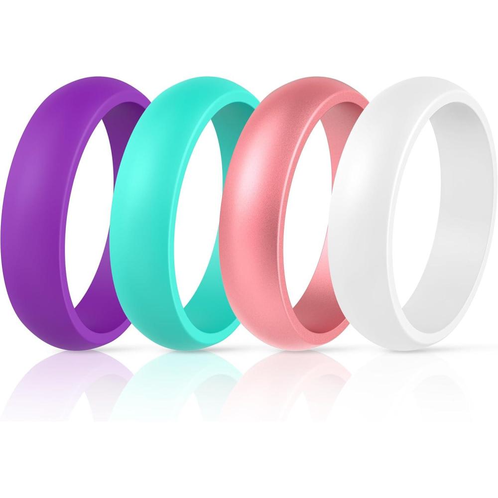 ThunderFit Silicone Wedding Bands for Women, Dome Unique Anniversary Rings 5.5mm Wide 2mm Thick – 1/2/3/4/5/6/7/8/12 Variety Multipack(Pack Z: Teal White Purple Metallic Pink)
