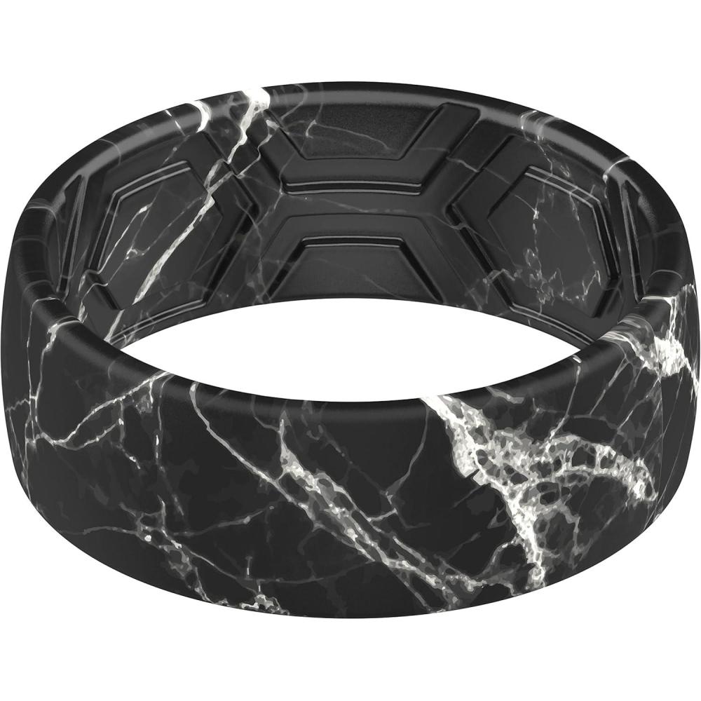 ThunderFit Silicone Wedding Rings for Men, Breathable Printed Design Rubber Engagement Bands 8mm Wide 2mm Thick(Black Marble)