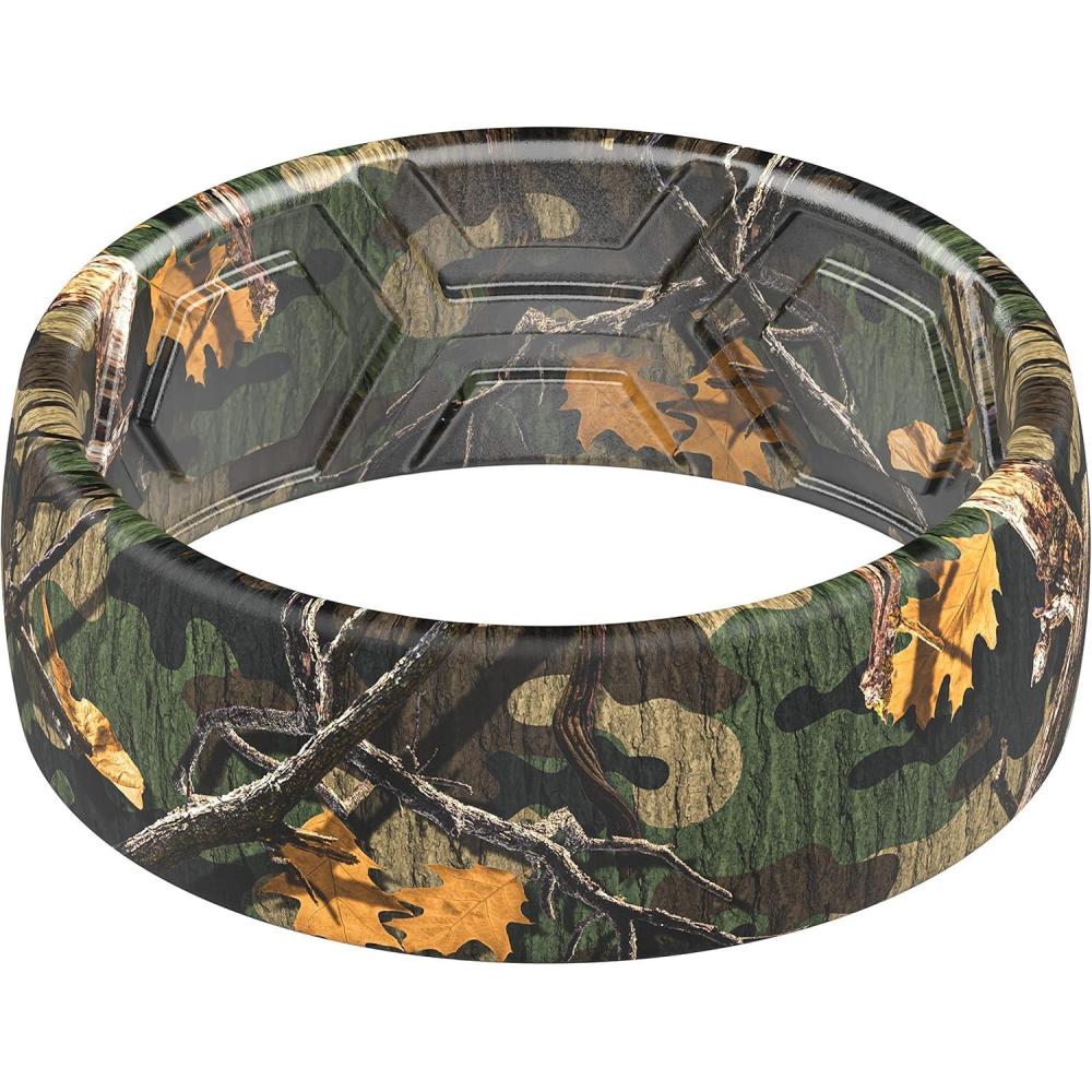 ThunderFit Silicone Wedding Rings for Men, Breathable Printed Design Rubber Engagement Bands 8mm Wide 2mm Thick(Camo Branches 1)