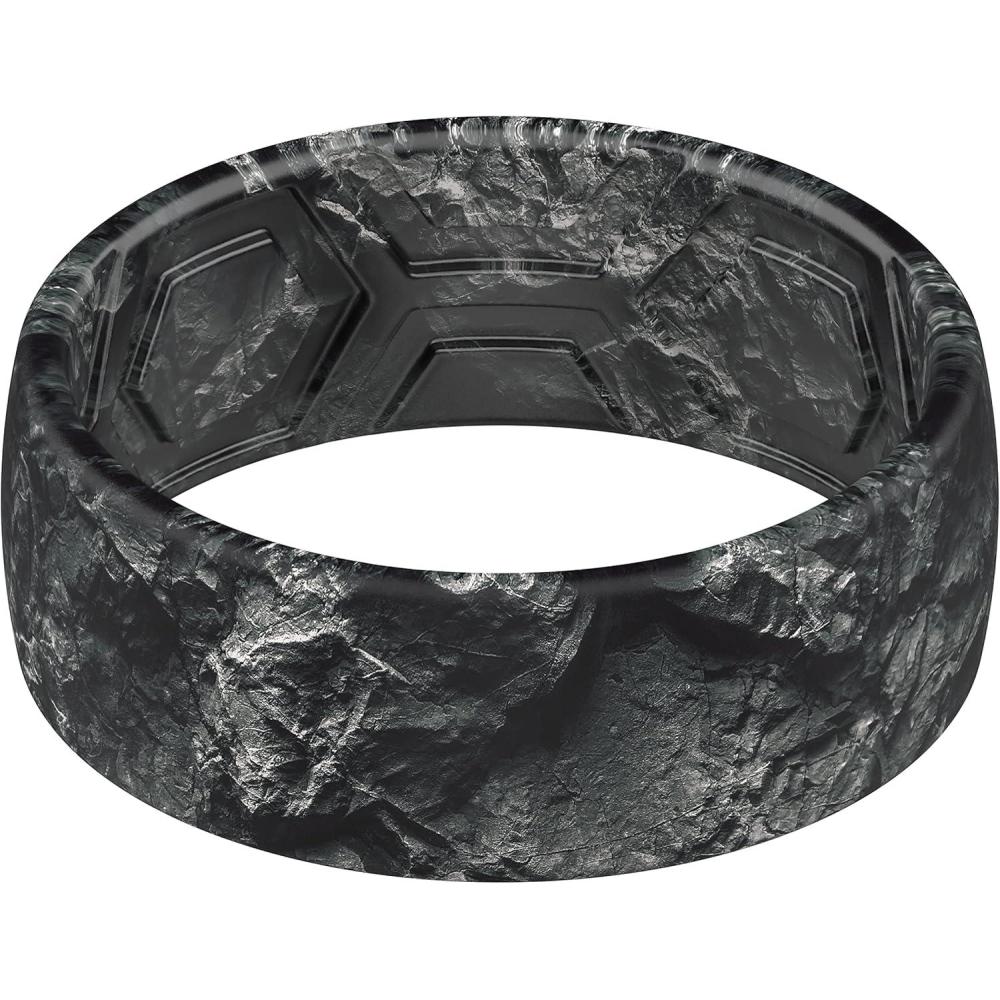 ThunderFit Silicone Wedding Rings for Men, Breathable Printed Design Rubber Engagement Bands 8mm Wide 2mm Thick(Stone)