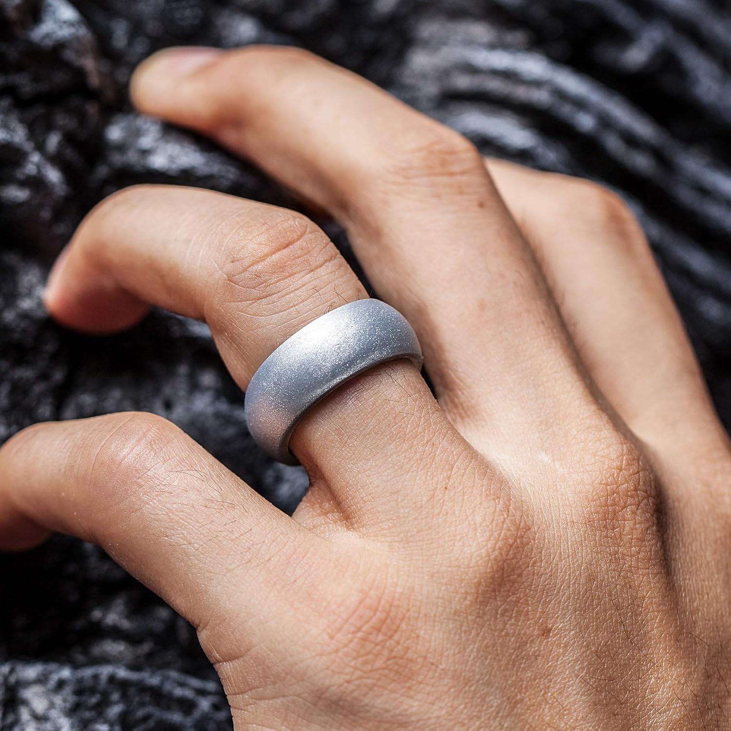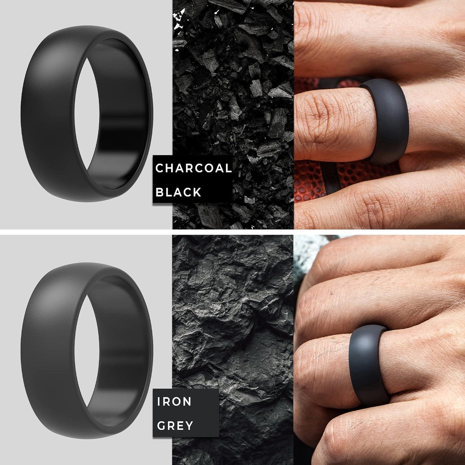 ThunderFit Silicone Wedding Rings for Men, Rubber Engagement Bands 8.7mm Wide 2.5mm Thick – 1/2/3/4/5/6/7/12/16 Variety Multipack(Pack M: Charcoal Black Iron Grey Grey Silver Smokey Grey)