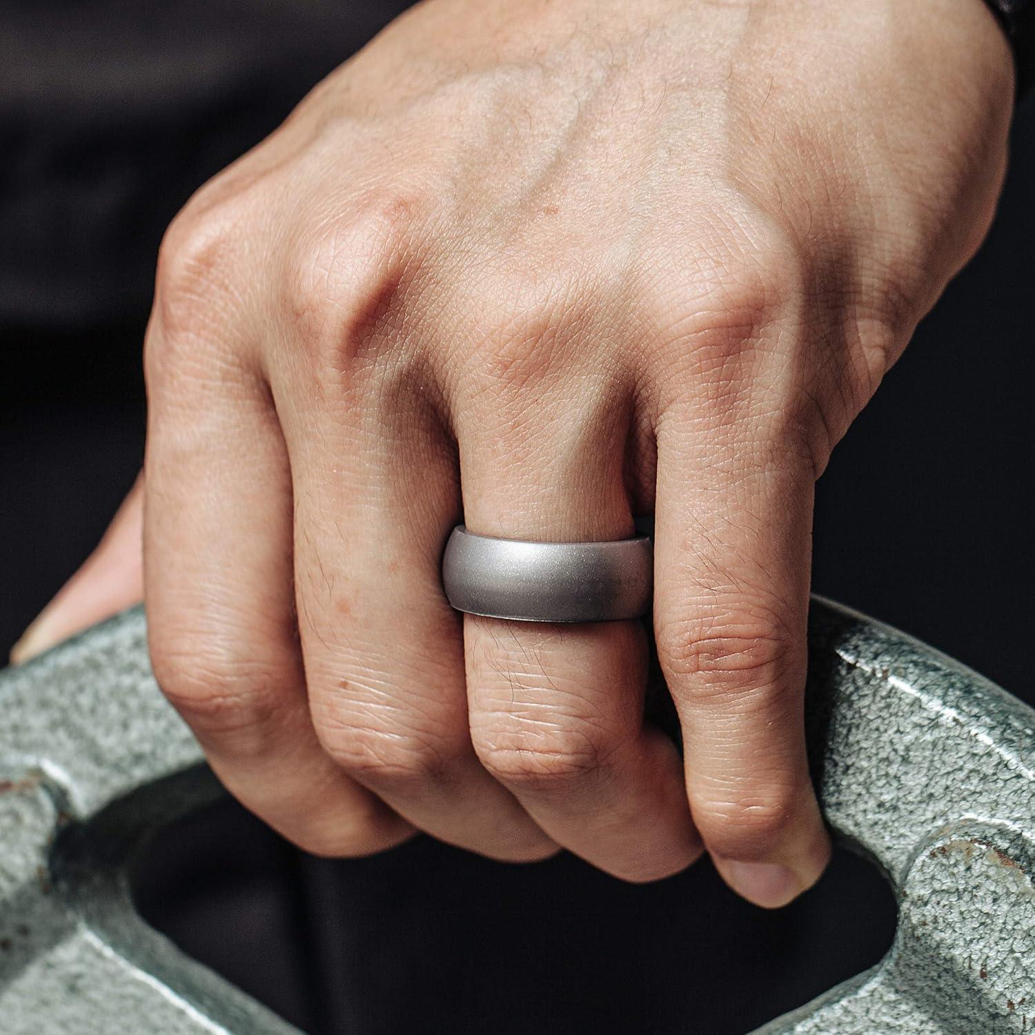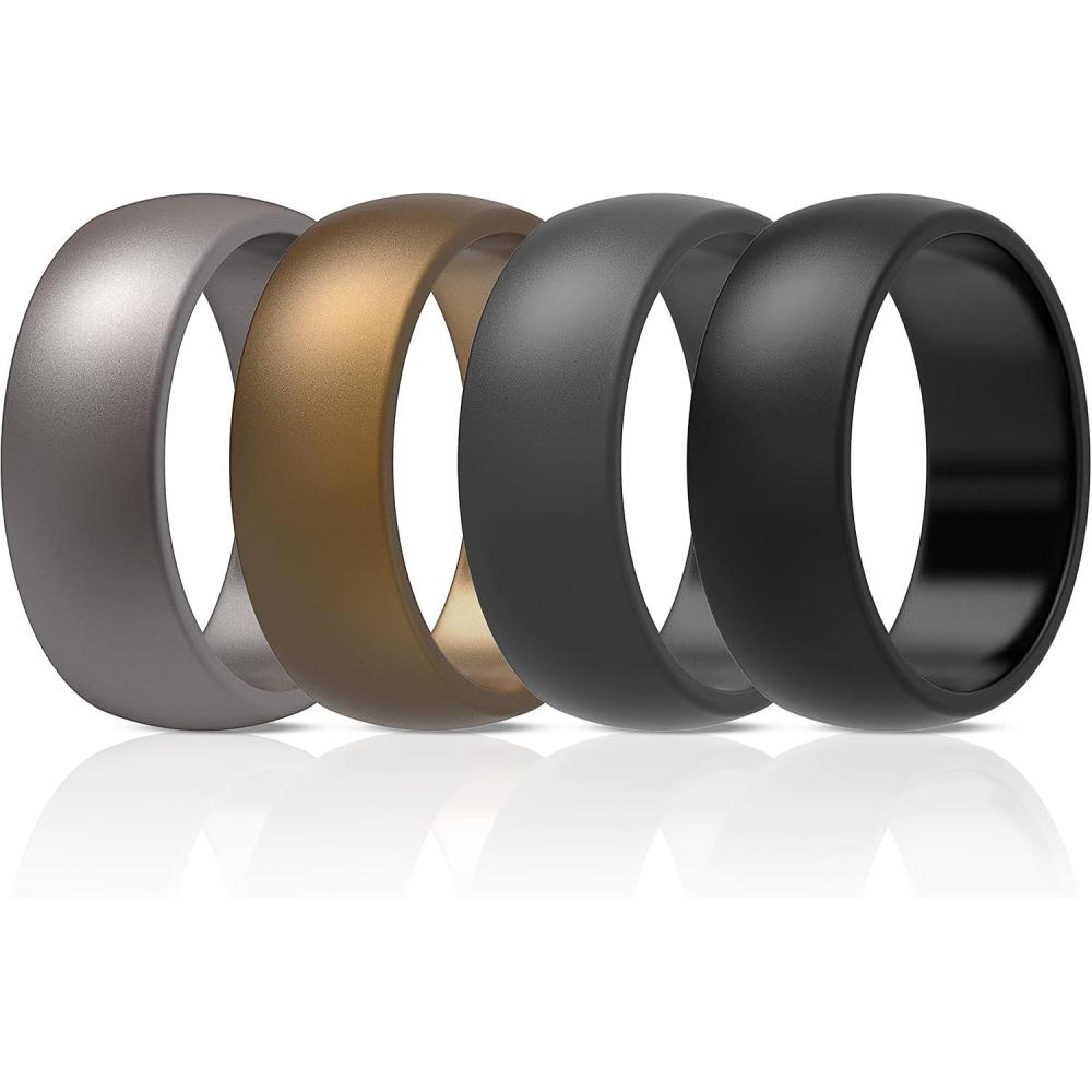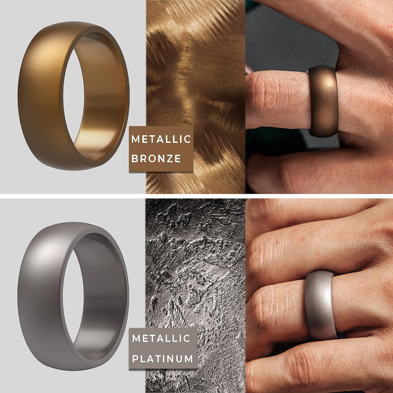 ThunderFit Silicone Wedding Rings for Men, Rubber Engagement Bands 8.7mm Wide 2.5mm Thick – 1/2/3/4/5/6/7/12/16 Variety Multipack(Pack O: Charcoal Black Iron Grey Metallic Bronze Metallic Platinum)