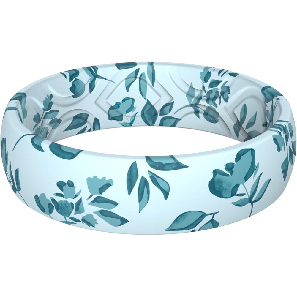 imageThunderFit Silicone Wedding Rings for Women Printed Design Breathable Rubber Engagement Bands 55mm Wide 18mm ThickPack Q Grey Foliage