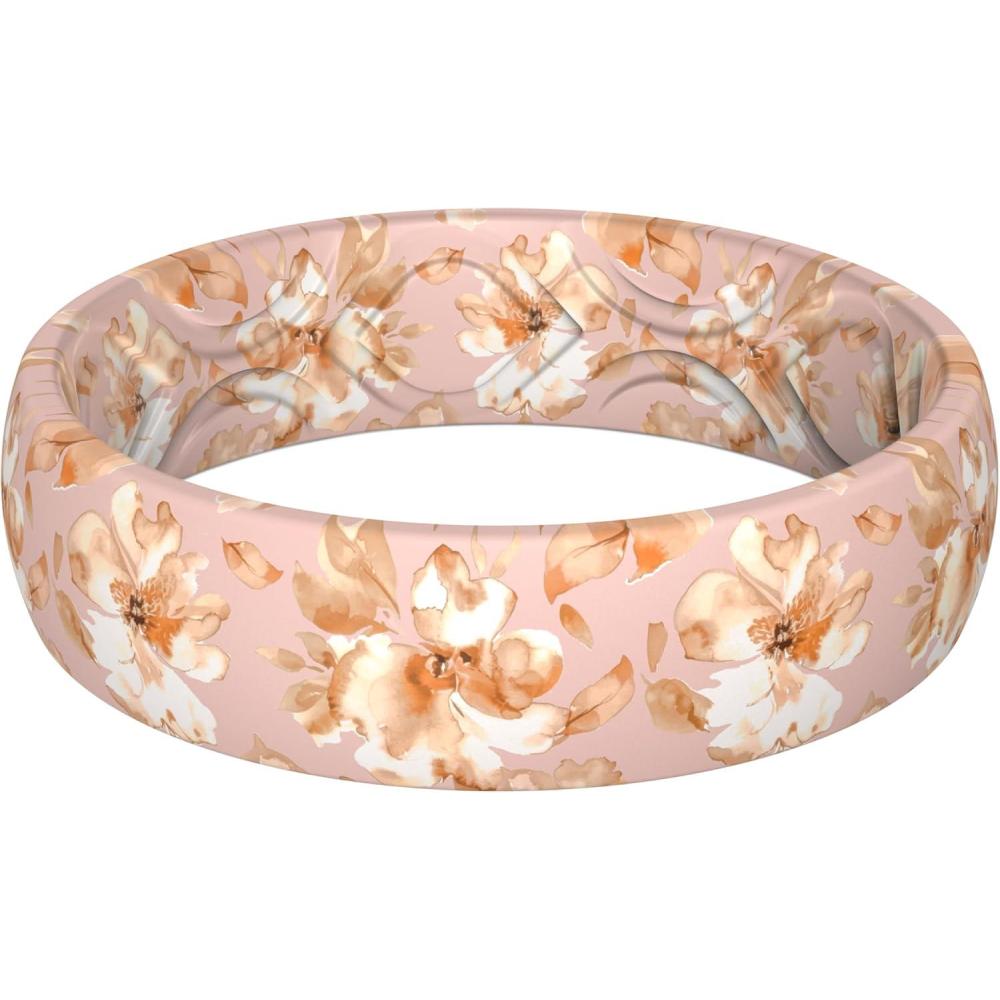 imageThunderFit Silicone Wedding Rings for Women Printed Design Breathable Rubber Engagement Bands 55mm Wide 18mm ThickPack U Magnolia Flower